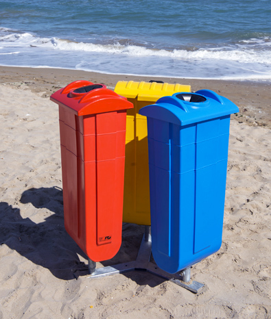 Beach eco-island with 3 or 4 bins with support for pole